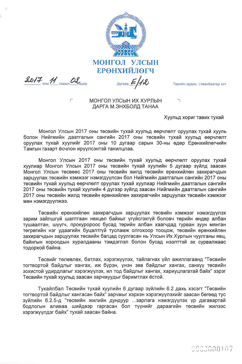 ЕРӨНХИЙЛӨГЧИЙН ТАМГЫН ГАЗРААС ХУДАЛ МЭДЭЭЛЭЛ ТАРААСАН САЙТЫГ ШҮҮХЭД ӨГНӨ