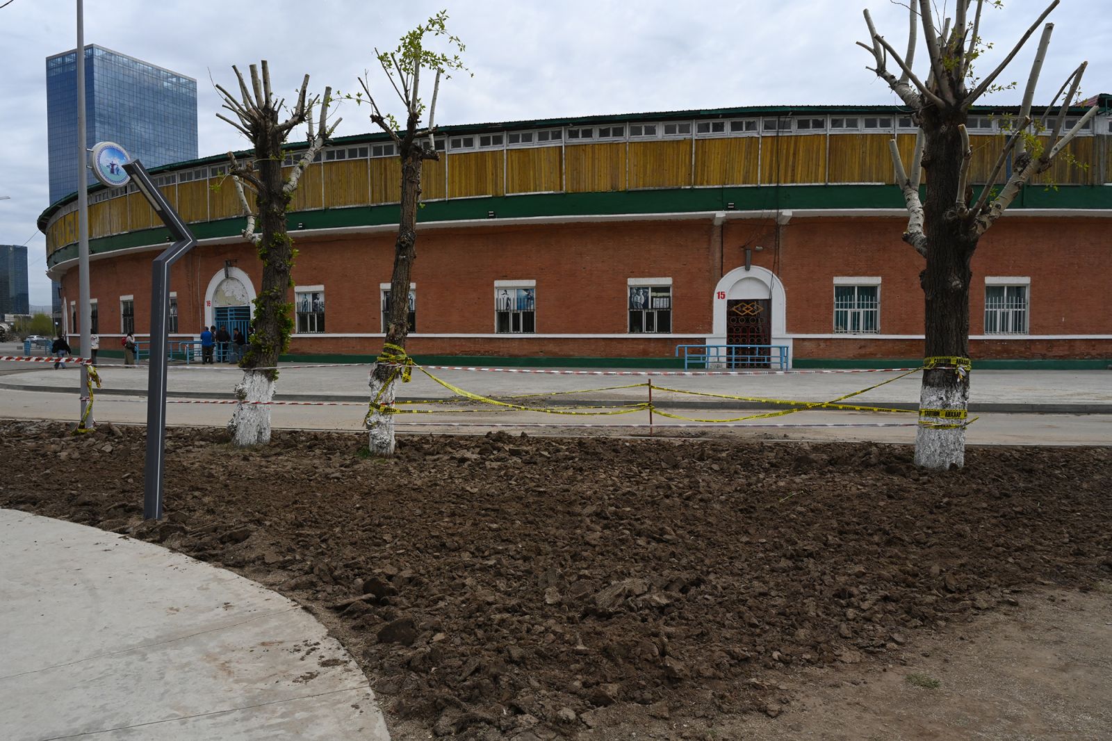 Төв цэнгэлдэх хүрээлэнгийн гадна, дотор талбайг үндсэн хоёр хэсэгт хуваан засварлаж байна